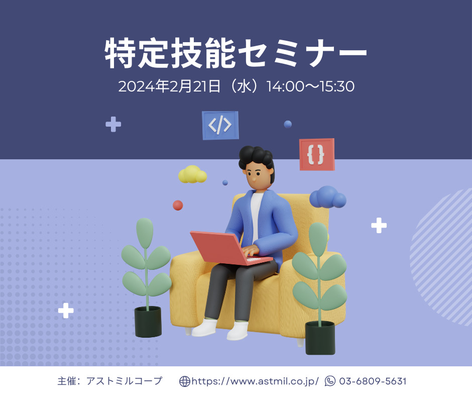 この実績を持つアストミルコープから、特定技能についてのノウハウや実例をご紹介いたします♪