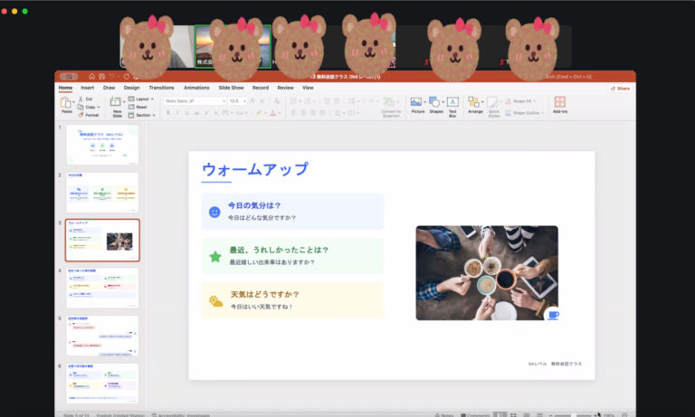 参加者👩:今日は天気が良いので、気持ちが良いです!