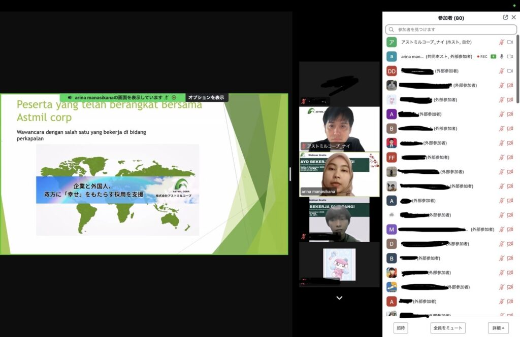 約2ヶ月間、東京オフィスにてご勤務いただいたインドネシア出身のアリナさん主催で、「インドネシア人向け特定技能セミナー」を実施いたしました。